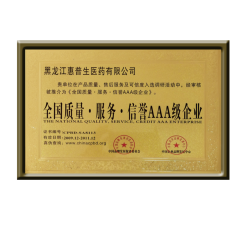 惠普生医药恪守“采集精品,惠及普生”的经营理念,以对患者和顾客负责,也是对品牌高度负责的态度,与优秀的研发、生产企业合作,采集优质的原材料,生产高品质的药品、营养健康食品和医疗器械,满足市场和人民群众的需要。20年来,惠普生医药的产品在全国各地销售,没有一粒假劣产品。惠普生的“采集精品,惠及普生”理念,赢得了全国人民的信赖,被评为全国质量·服务·信誉AAA级企业。